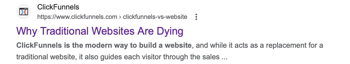 Clickfunnels claims that “Traditional Websites are Dying.”