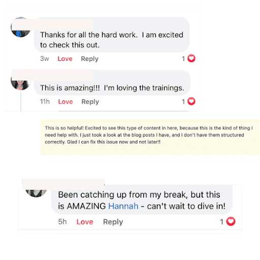 PLUS get access to the like-minded community of driven website owners to connect with, while receiving direct answers and 24h support from me personally.